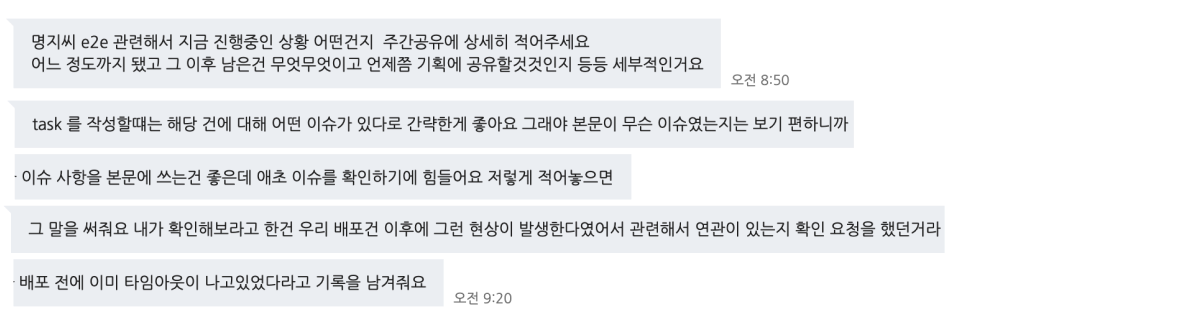 파트장님께서는 항상 피드백을 구체적으로 주셨고