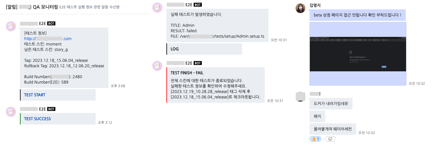 서비스 베타 배포 후, 자동 QA 진행 및 결과를 안내 받을 수 있는 프로세스를 구축했다.